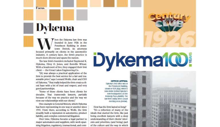 For a century, clients have trusted Dykema to navigate critical moments, manage risk, and seize opportunity. Today, we draw on that experience to deliver collaborative, business-minded counsel—focused not on where we’ve been, but on where our clients are going.