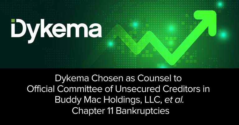 Dykema has been selected as counsel to the Official Committee of Unsecured Creditors in the Chapter…