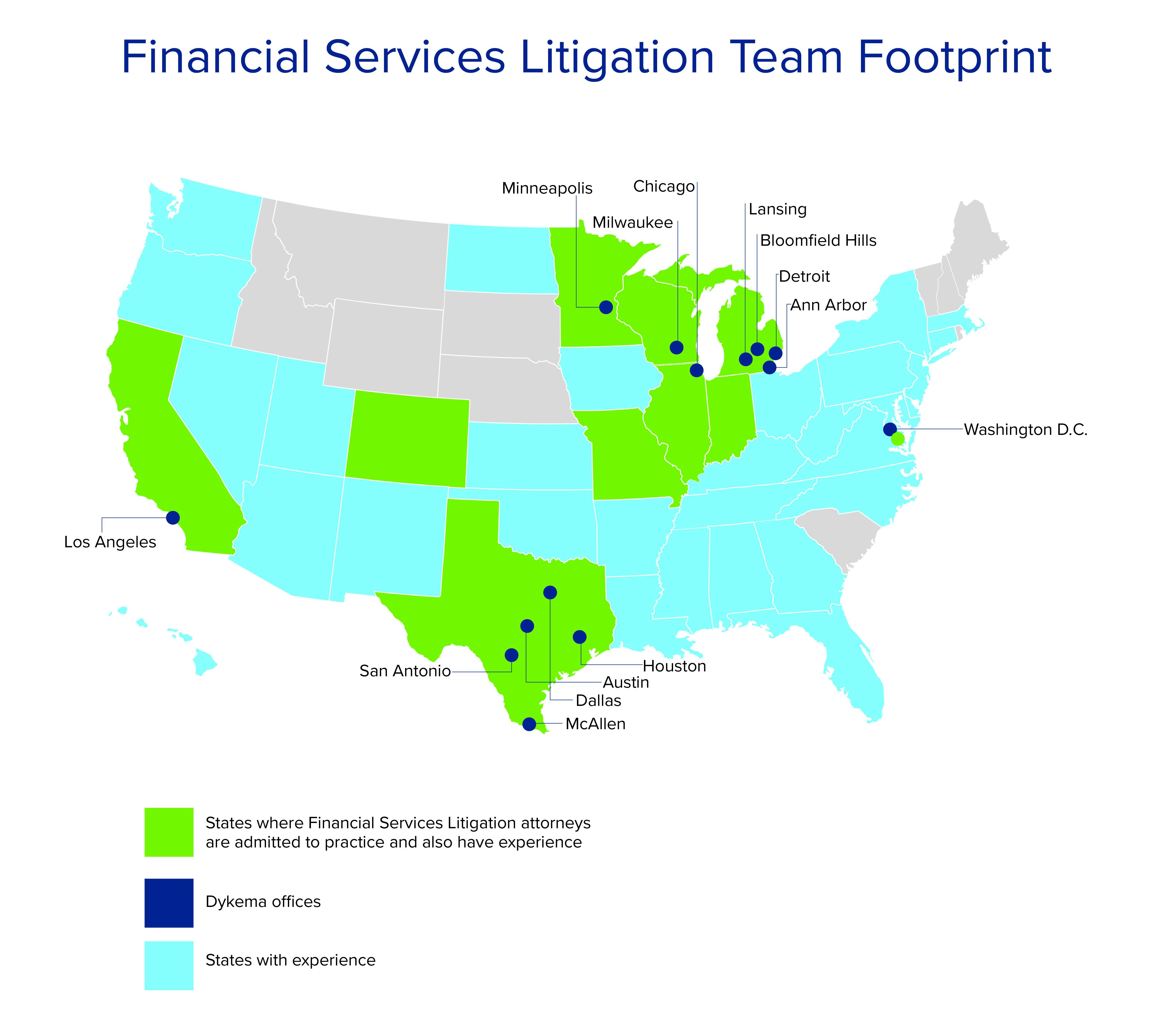Litigation breeds uncertainty. For banks and other financial institutions, stability and predictability are a must. While we can’t change the nature of litigation, we strive to give our clients the information, the analysis, and the opportunities you need to evaluate litigation risk and effectively navigate disputes.