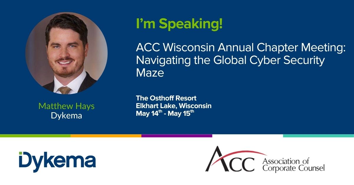 Navigating the Global Cyber Regulatory Maze Dykema attorney Matthew Hays will present at the…